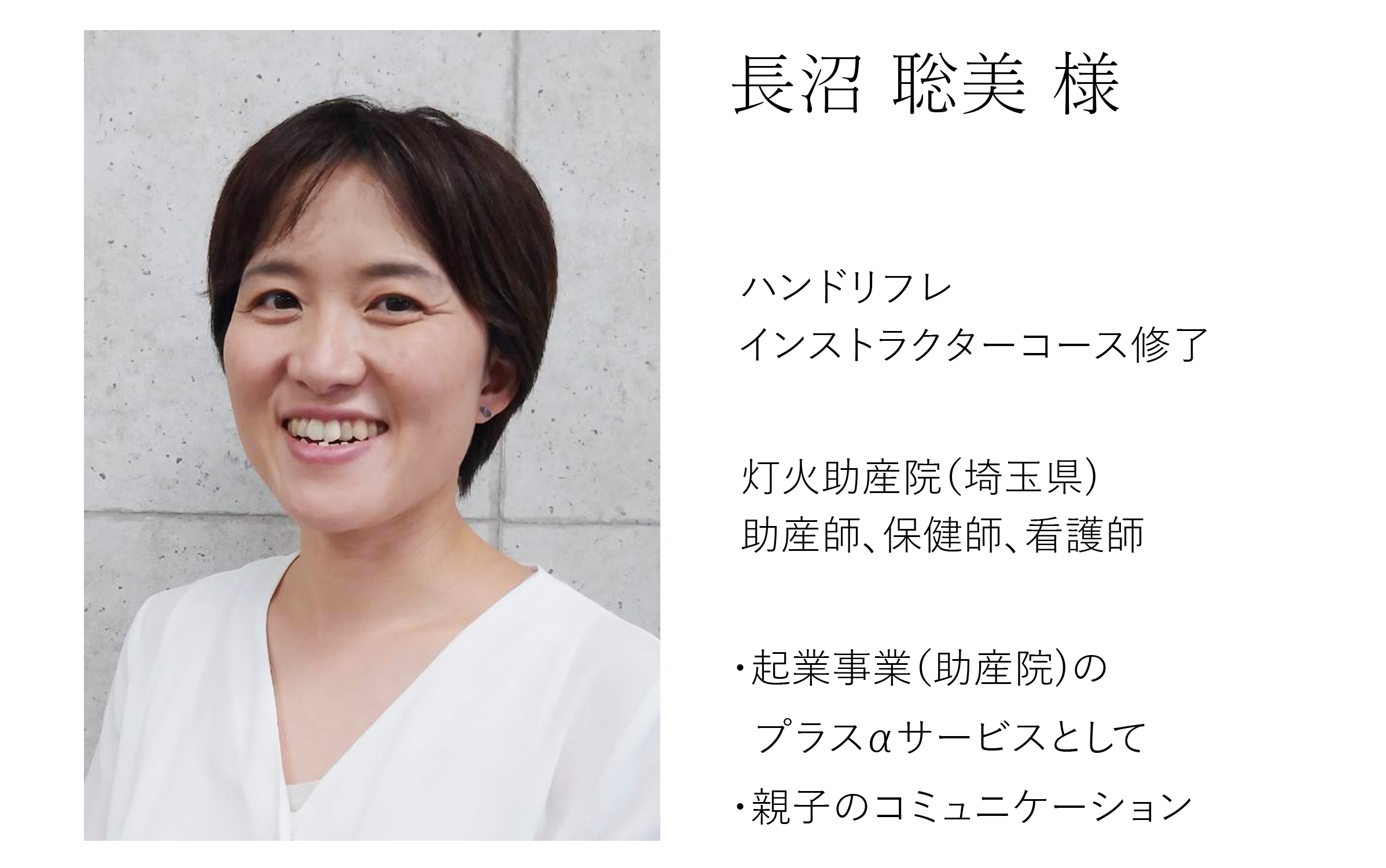 助産院のメニューの中にハンドリフレを導入しています。話してもいいのか迷うことも、気にせず話してもらえたらと思います。少しでもリラックスして、お話しいただけるような環境ができればと思っています。